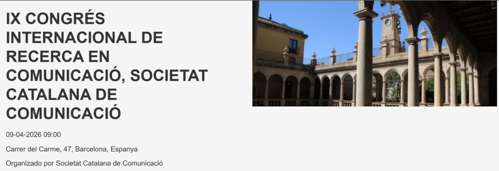 [ES] Disponible la página de inscripciones al IX Congreso Internacional de Investigación en Comunicación de la Societat Catalana de Comunicació, 9-10 de abril de 2026: